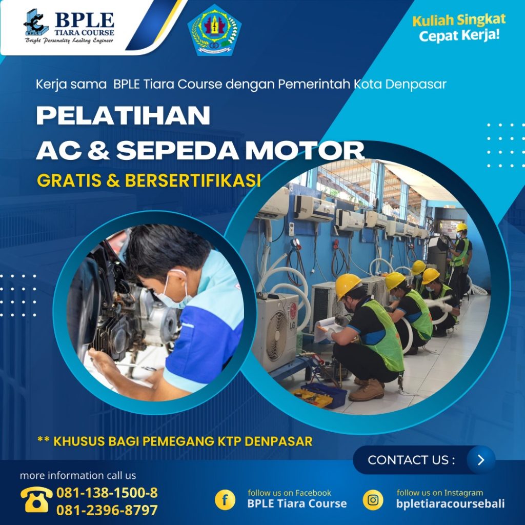 ๐๐๐๐๐ ๐๐๐๐๐๐๐!!!!!Buat yang ingin memiliki keterampilan di bidang AC ataupun Sepeda Motor, saat ini BPLE Tiara Course bekerja sama dengan Pemerintah Kota Denpasar memberikan pelatihan secara ๐๐๐๐๐๐ khusus bagi kalian para pemegang KTP Denpasar ๐ฅฐ. Pelatihan ini akan dilaksanakn mulai tanggal 22 Mei 2023 ya, sampai dengan ๐๐๐ซ๐ข๐๐ข๐ค๐๐ฌ๐ข ๐๐๐ซ๐ข ๐๐๐๐ lho ๐. Buruan daftar, jangan […]