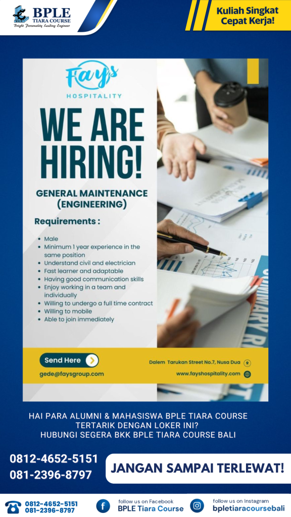 LOWONGAN ENGINEERING MECHANICAL & ELECTRICAL
