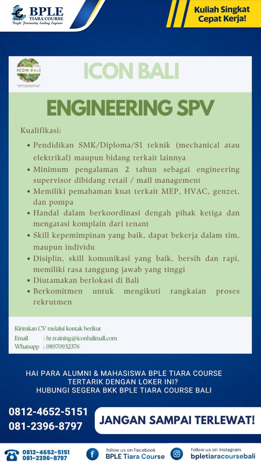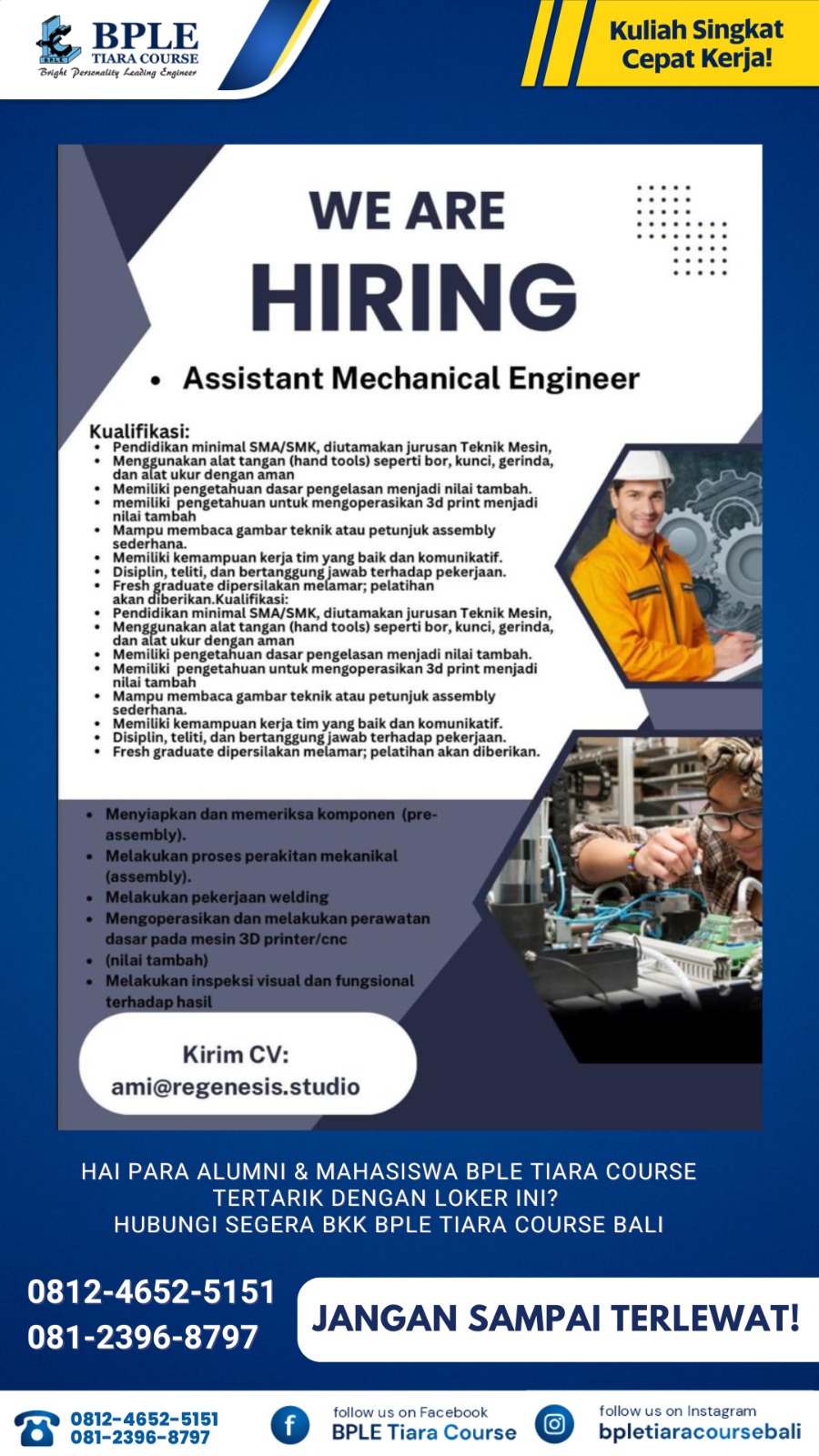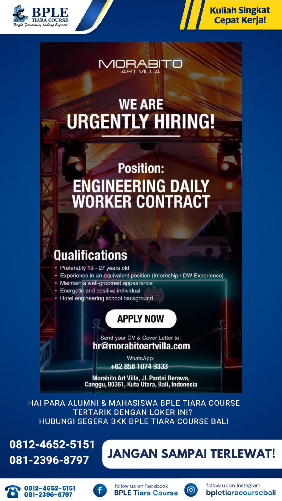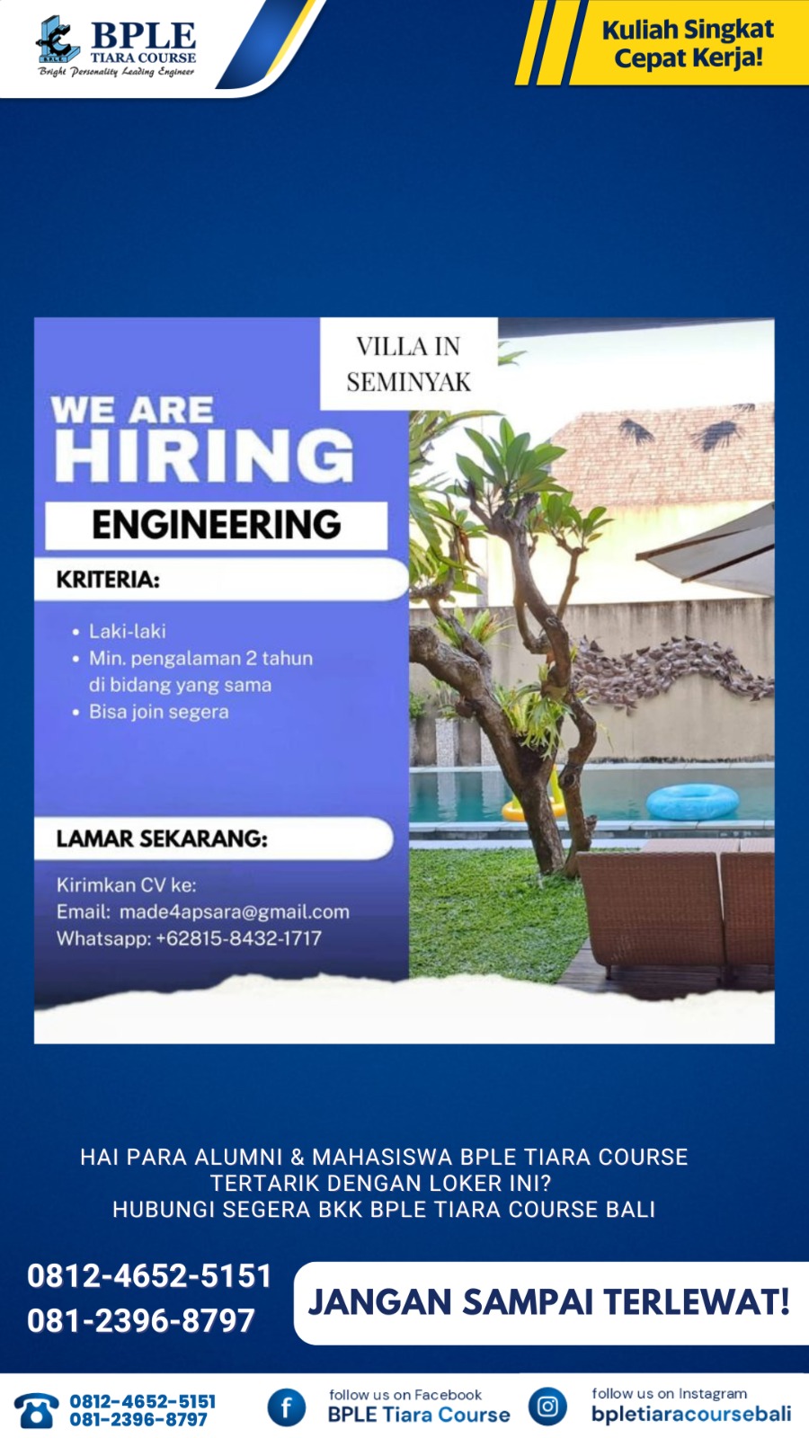 LOWONGAN ENGINEERING MECHANICAL & ELECTRICAL