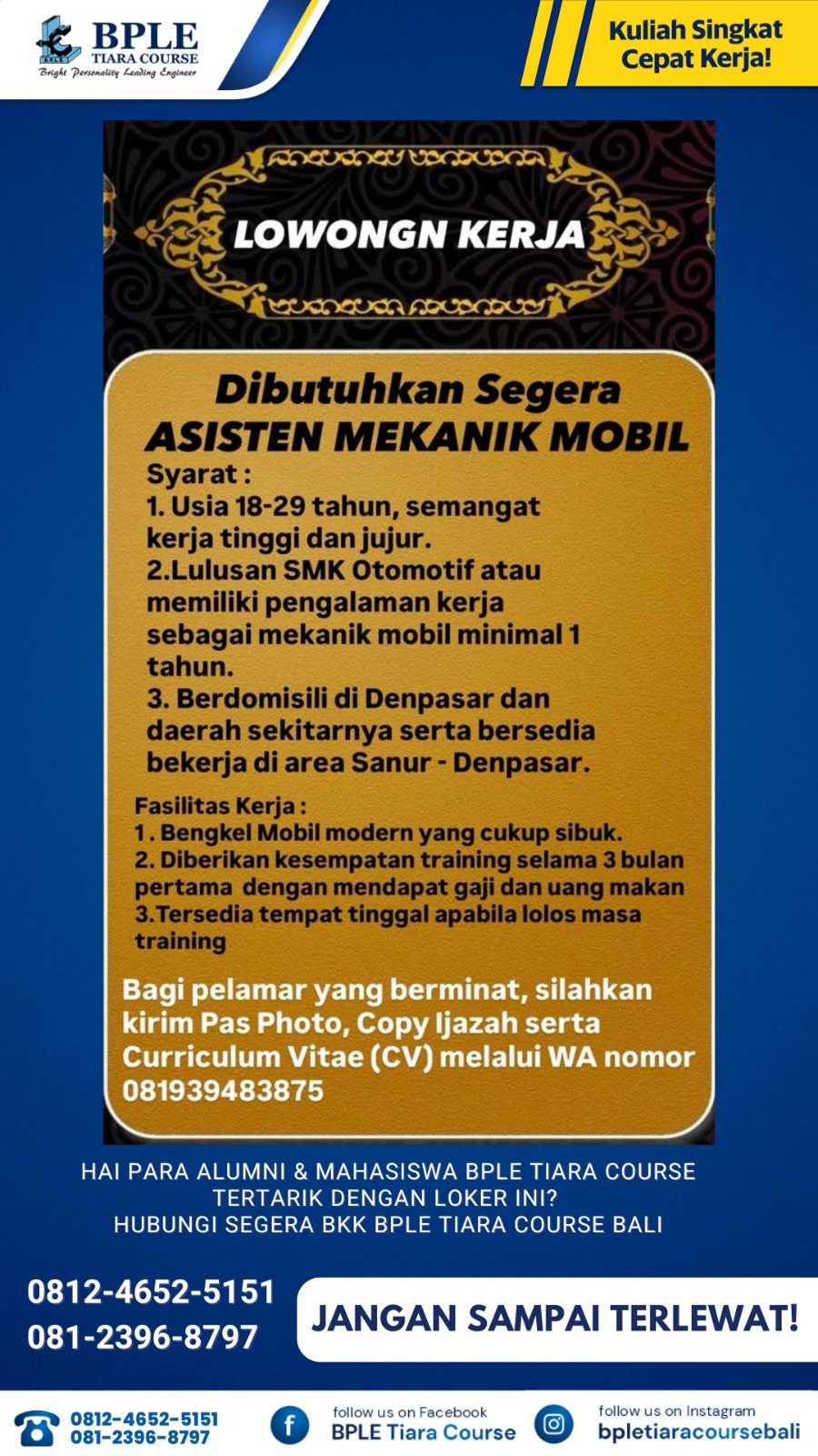 ya di BPLE Tiara Course aja, klik untuk daftar